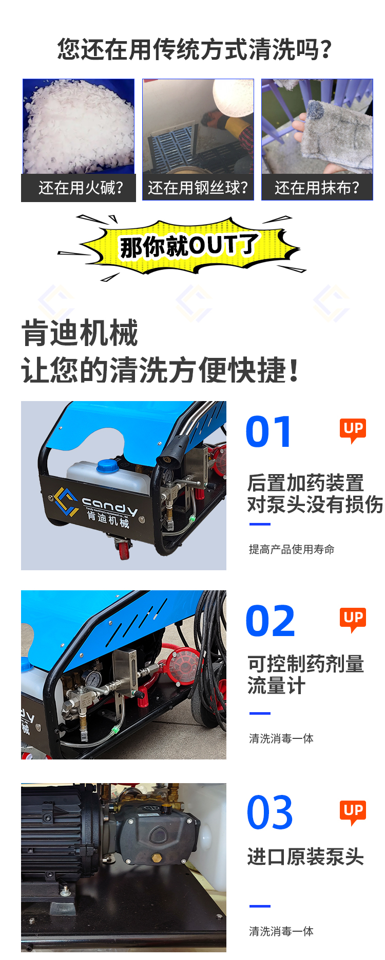 ? 配備意大利AR泵,工作時(shí)間長(zhǎng),穩(wěn)定可靠? 設(shè)置前置配藥箱,通過玻璃轉(zhuǎn)子流量計(jì)控制藥量噴射;? 配備快插接頭,操作方便簡(jiǎn)單高效;? 低壓關(guān)槍停機(jī),關(guān)閉噴槍瞬間停機(jī);? 整機(jī)配備電路板控制便于維修安全可靠。